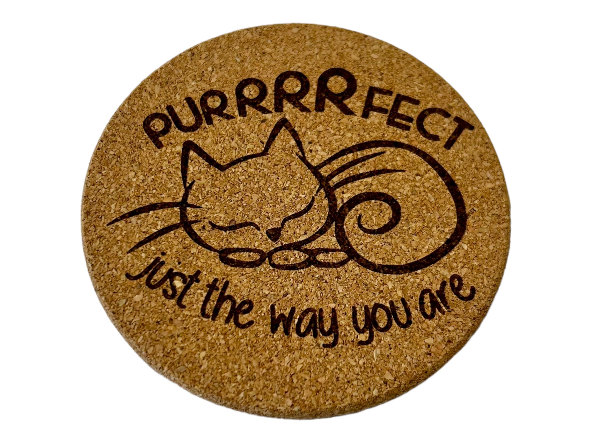 Purrrrfect Just The Way You Are Encouraging Cat Quote Cork Coaster