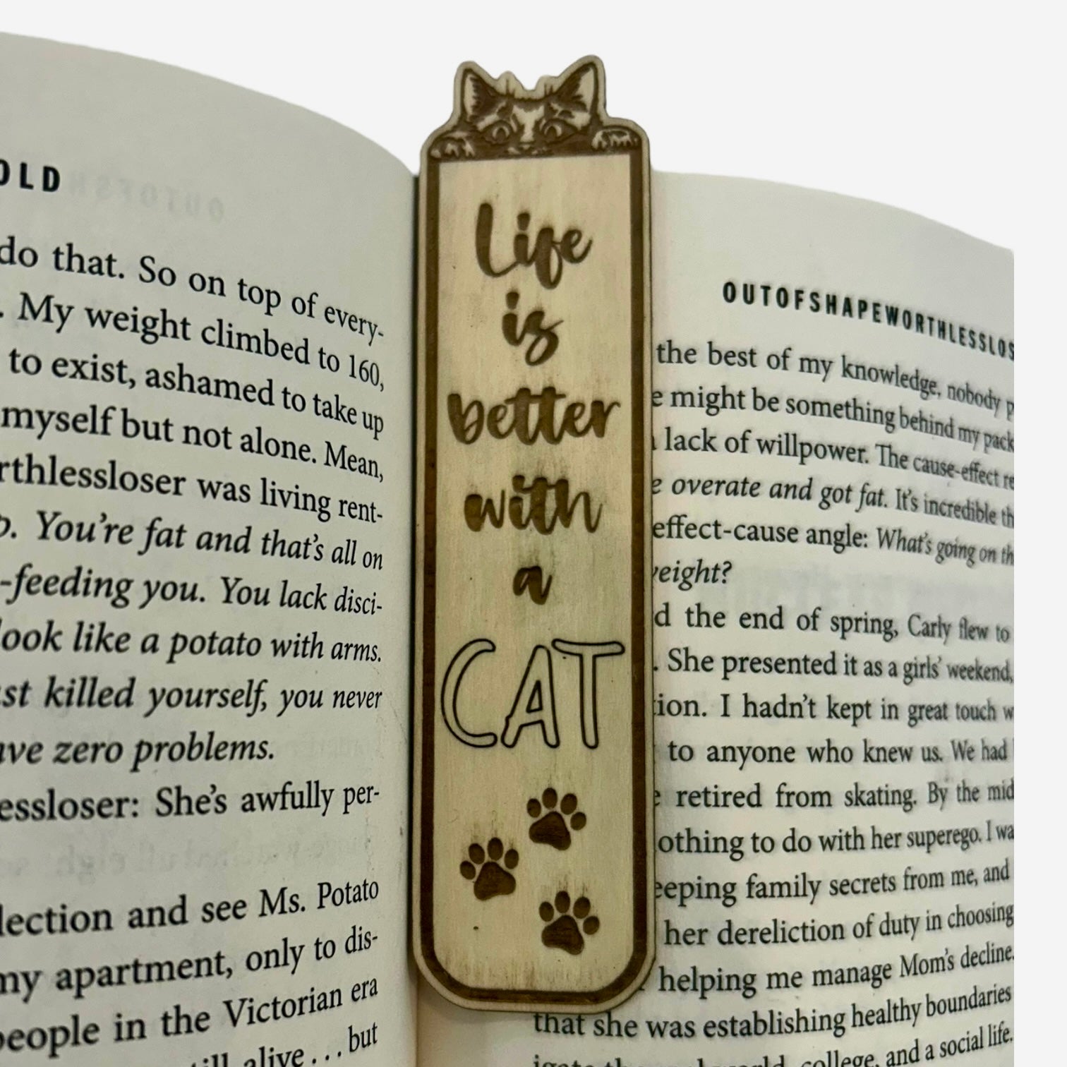 Life is Better With a Cat Bookmark - Leather or Wooden